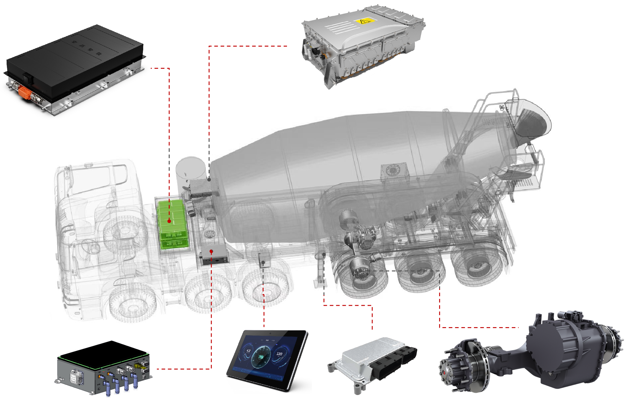 聯(lián)合研發(fā)的混合動力牽引攪拌半掛車,以其開創(chuàng)性的頭掛一體智能驅(qū)動技術(shù),開辟了綠色高效商砼運輸?shù)男绿斓?。它集成了先進的混合動力技術(shù),實現(xiàn)了混凝土攪拌運輸車產(chǎn)品高效能、低排放、輕量化、智能化的目標,引領(lǐng)混凝土行業(yè)對高品質(zhì)攪拌運輸車的需求。